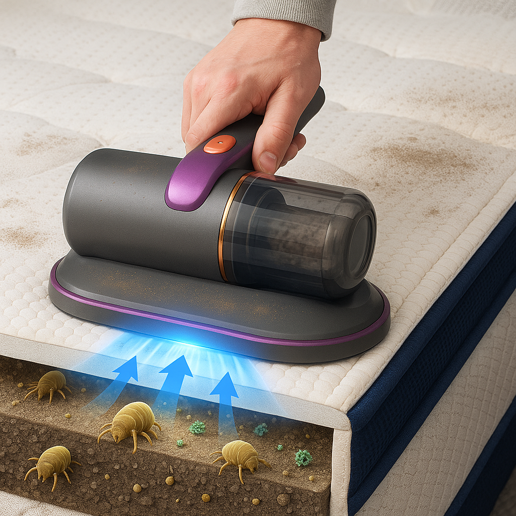 Our Wireless Vacuum Cleaner is engineered with advanced technology and powerful suction to swiftly remove hidden irritants far beyond what regular cleaning can achieve. Designed for effortless use and lasting performance, it transforms your mattress into a truly clean, healthy sleep surface - enhancing the quality of your sleep every night.